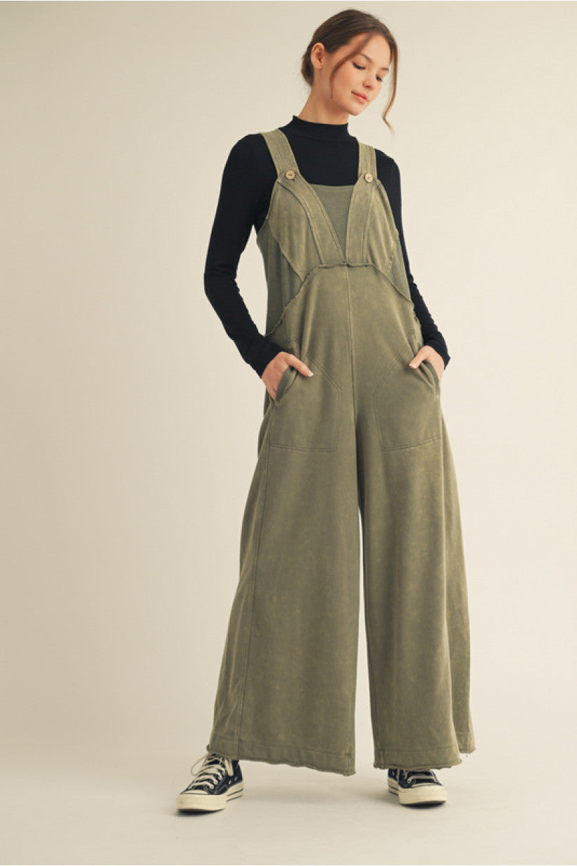 Hadlee Mineral Washed Utility Jumpsuit - Olive